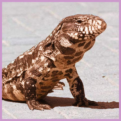 These extra large lizards are commonly referred to as tegus. The tegu is an omnivorous species which inhabits the tropical rain forests, savannas and semi-deserts of eastern and central South America.